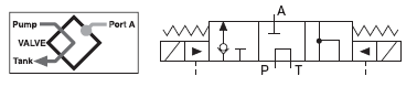 Functions: “Advance”, “hold” and “return” positions. When in “advance”, solenoid “B” is energized and oil goes from pump to cylinder through pressure port. In “return” position, solenoid “A” is energized and oil is directed from cylinder and pump to reservoir. With both solenoids de-energized, in “hold” position, oil from pump is directed back to reservoir while oil is checked in cylinder. The “Posi-Check” feature holds load when shifting from “advance” to “hold” position.